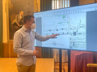 El concejal de Obras Públicas y Proyectos de Ciudad del Ayuntamiento de Gijón, Olmo Ron, durante la presentación de la remodelación de la calle Río Eo - AYUNTAMIENTO DE GIJÓN