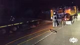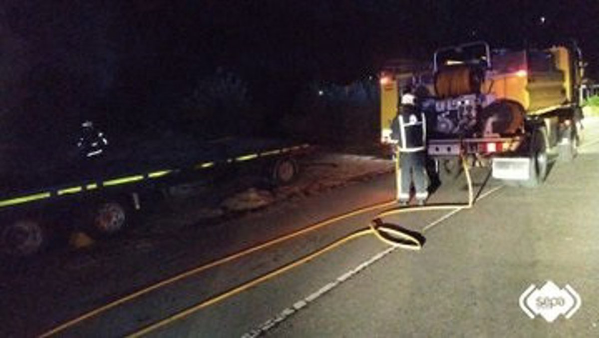 El sus ceso se produjo en la carretera MO-1, en el punto kilométrico 1. Quemó la base del remolque y los fardos de hierba que transportaba, según información del SEPA recogida por Europa Press.