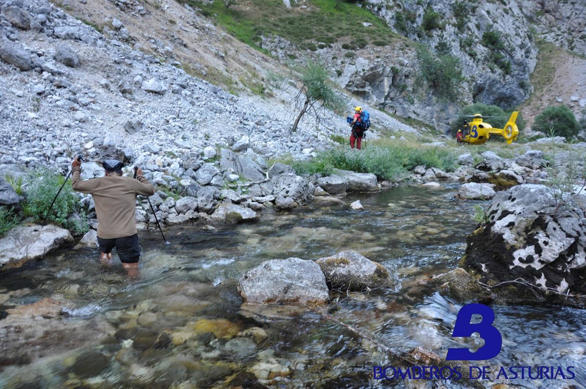 El Grupo de Rescate de Bomberos de Asturias, a bordo del helicóptero medicalizado de la entidad, rescató la tarde del martes ileso a un montañero en la Ruta del Cares, en Cabrales. Según ha informado el 112-Asturias, al parecer el varón, cuya identidad se corresponde con las iniciales F.A., estaba agotado después de terminar en una zona del río sin salida, tras equivocarse en el camino que debía seguir.