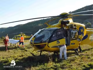 De inmediato se movilizó al Grupo de Rescate de Bomberos de Asturias, del que forma parte un médico-rescatador, con el Helicóptero Medicalizado y además por rapidez, dado el estado en el que se encontraba la herida y para intentar determinar su posición, se movilizó uno de los helicópteros multifunción de bomberos, con base en Ibias, con personal de este parque.