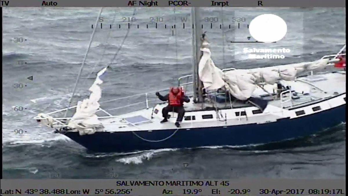 Finalmente el helicóptero localizó el velero y evacuó a la persona que estaba dentro. Debido a los fuertes vientos, chubascos y las olas de hasta tres metros, el único tripulante del velero tuvo que saltar al agua para ser rescatado. Finalmente fue evacuado en helicóptero hasta el puerto del Musel en torno a las 9.30 horas. Posteriormente la Salvamar Rigel remontó el velero hasta el puerto.