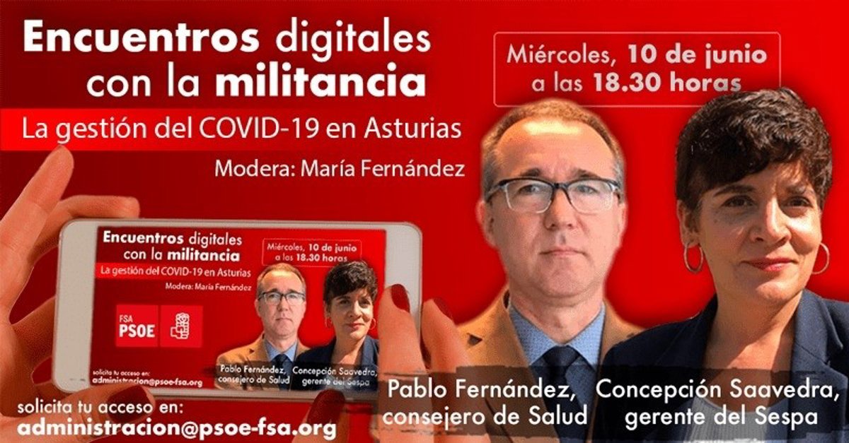 Según información de la Federación Socialista Asturiana recogida por Europa Press, la cita, que lleva por título 'La gestión del COVID-19 en Asturias', tendrá lugar a partir de las 18.30 horas. Es necesario que los militantes que quieran acceder soliciten su acceso a través de un correo electrónico.