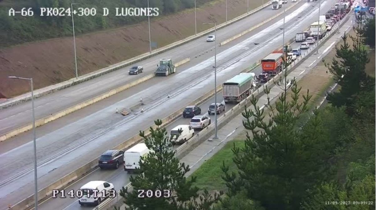 El tráfico en la autopista Y, la vía que une las principales ciudades de la región está siendo complicada esta mañana con retenciones kilométricas en la salida de Oviedo hasta la estación de servicio de Repsol situada en Robledo y en la incorporación a la A-66 desde la A-64, la autovía que conecta con Santander, debido a las obras de construcción del tercer carril que está llevando a cabo el Ministerio de Transporte, Movilidad y Agenda Urbana.