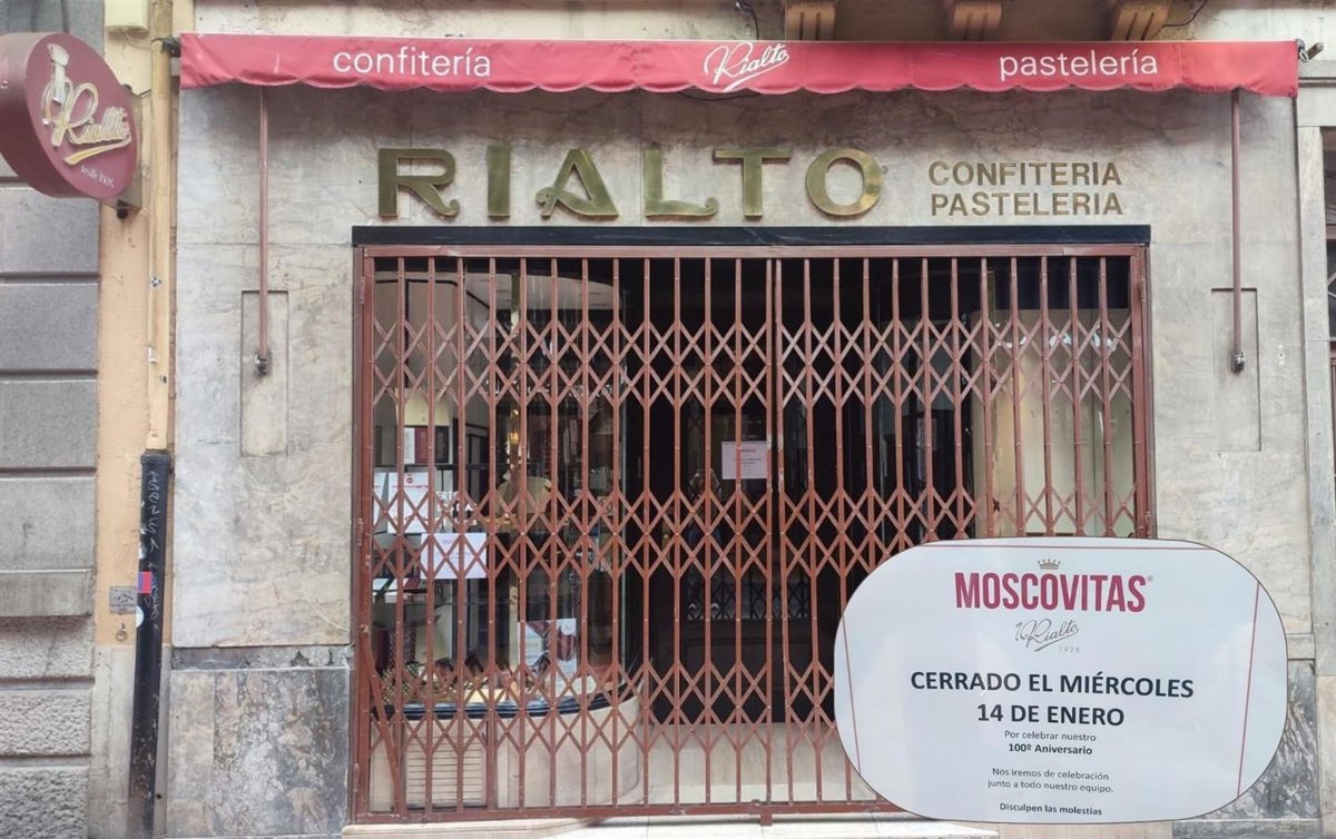 La dirección de la histórica confitería Rialto, ubicada en pleno centro de Oviedo, ha tomado la decisión sin precedentes de cerrar sus puertas durante un día ante el desconcierto de ovetenses y turistas, que ven cómo un establecimiento emblemático que presume de abrir los 365 días del año ha colgado el cartel de 'cerrado'.