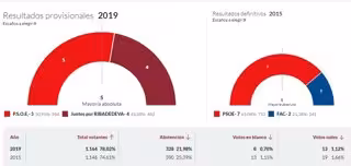 En las pasadas elecciones municipales, celebradas en 2015, el partido más votado fue el PSOE con el 65,04 por ciento de votos y 7 concejales, seguido de Foro, con el 21,38 por ciento de los sufragios, que le dio 2 ediles.