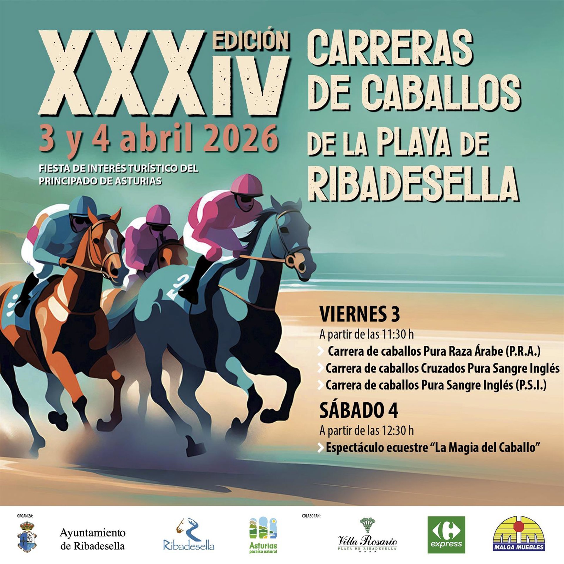 La XXXIV edición de las carreras de caballos de Ribadesella se celebra este viernes y sábado, 3 y 4 de abril, en la playa de Santa Marina, en un evento declarado Fiesta de Interés Turístico del Principado de Asturias. La jornada comienza a las 11.30 horas.