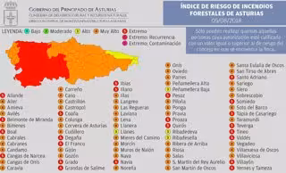 En el resto de concejos asturianos el riesgo será 'muy alto'. Tan solo en cuatro municipios el riesgo se sitúa en la franja de 'alto': Llanes, Peñamellera Baja, Rivadedeva y Ribadesella.