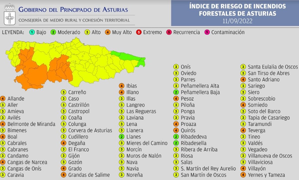 Riesgo de incendios forestales en Asturias para el domingo 11 de septiembre de 2022. - GOBIERNO DE ASTURIAS