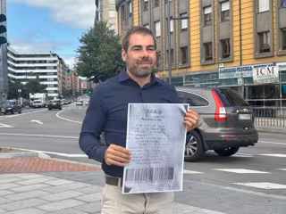 El exdiputado y denunciante del peaje del Huerna, Daniel Ripa, con una imagen del ticket del peaje. - EUROPA PRESS