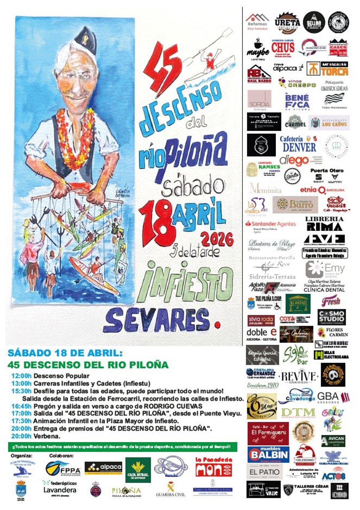 Posteriormente, a las 17.00 horas, se dará la salida al descenso desde el Puente Vieyu, en una prueba que recorrerá el río Piloña hasta la localidad de Sevares. A las 17.30 horas habrá animación infantil en la Plaza Mayor de Infiesto.