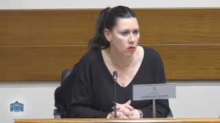 La directora general de Participación Ciudadana, Transparencia, Diversidad Sexual y LGTBI, Nuria Rodríguez, durante su comparecencia este lunes. - CAPTURA JGPA