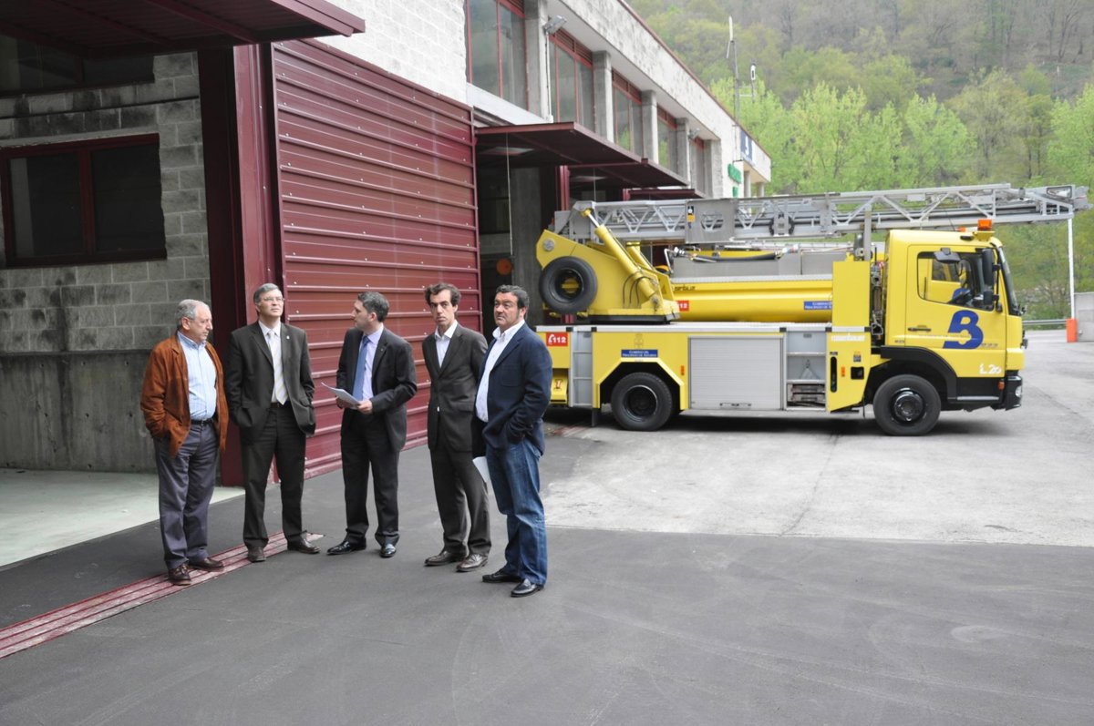 El Director General de Interior y Seguridad Pública, Valentín Ruiz García, y el Gerente de Bomberos de Asturias, Antonio del Corro, visitaron hoy la ampliación llevada a cabo en el hangar del Parque de Cangas de Onís. Las nuevas instalaciones, que han supuesto una inversión de 60.000 euros, permiten contar con una cubierta de 102 metros cuadrados en la que se puede albergar la totalidad de vehículos adscritos a este parque.