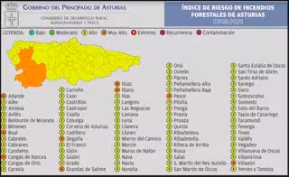 Así, el riesgo será 'muy alto' en la zona suroccidental, concretamente en los municipios de Allande, Boal, Cangas del Narcea, Degaña, Grandas de Salime, Ibias, Illano, Pesoz y Villayón. En el resto de concejos el riesgo será 'alto'.