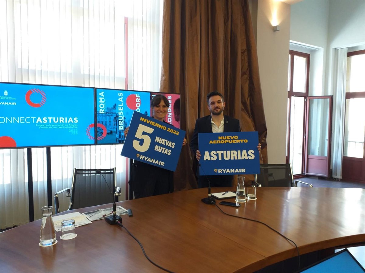 "Es un paso de gigante en la conectividad", ha remarcado el responsable del Principado, quien ha incidido en que sumadas las rutas actuales a las cinco de Ryanair y las dos para la próxima primavera, a Lisboa y Milán, adjudicadas a Volotea, serán diez las conexiones internacionales, lo que repercutirá en el desarrollo de la región, no solo a nivel turístico.