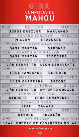 En esta ocasión, todas las citas de Cómplices de Mahou serán actuaciones a dúo ya que todos los artistas tienen una historia especial en común que compartirán con el público tomándose una cerveza.
