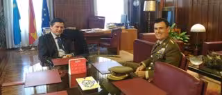El presidente de la Junta General del Principado, Pedro Sanjurjo, recibido este martes en el Parlamento al comandante militar de Asturias y coronel jefe del Regimiento de Infantería Ligera "Príncipe número 3", Raimundo Rodríguez Roca.