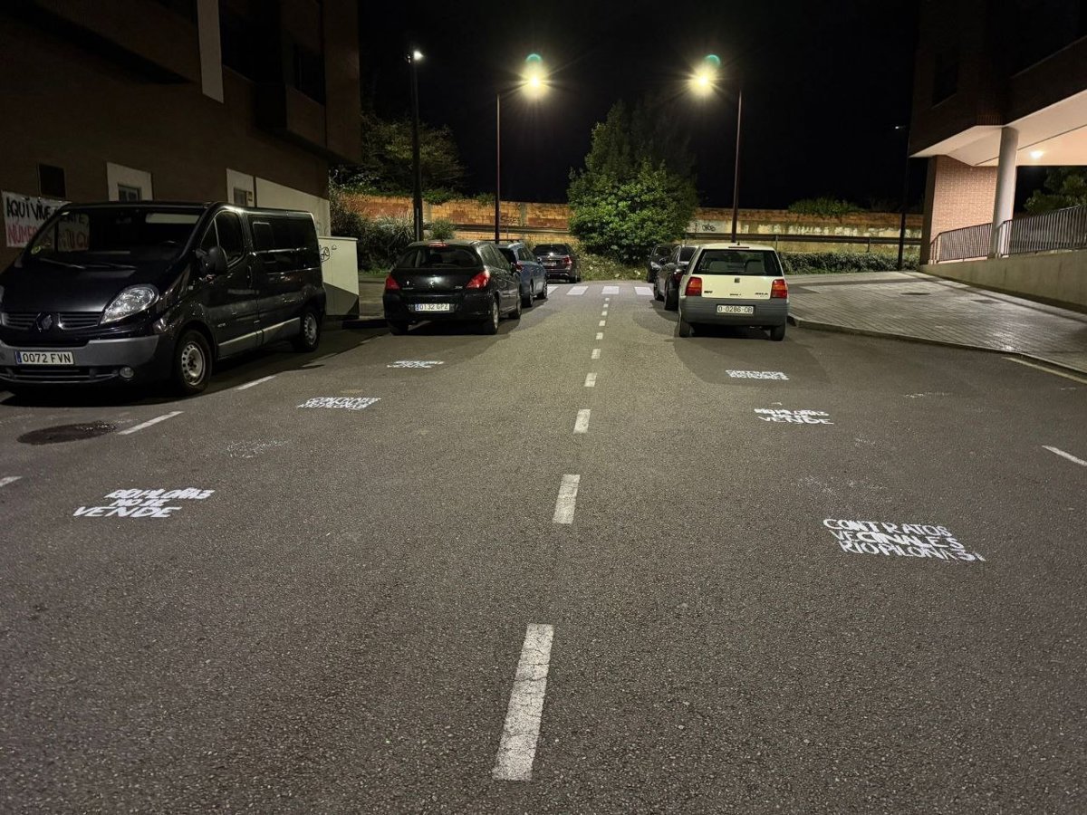 Pintadas de protesta de los vecinos del bloque Río Piloñe, 3, en Gijón, a los que la Sareb reclama una deuda por alquileres. - VECINOS BLOQUE RÍO PILOÑE, 3