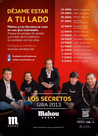 El próximo 19 de abril, Los Secretos volverán en Oviedo a los escenarios en el primer concierto de su nueva gira, 'Déjame estar a tu lado', un título que aúna dos de sus mayores éxitos, 'Déjame' y 'A tu lado'.