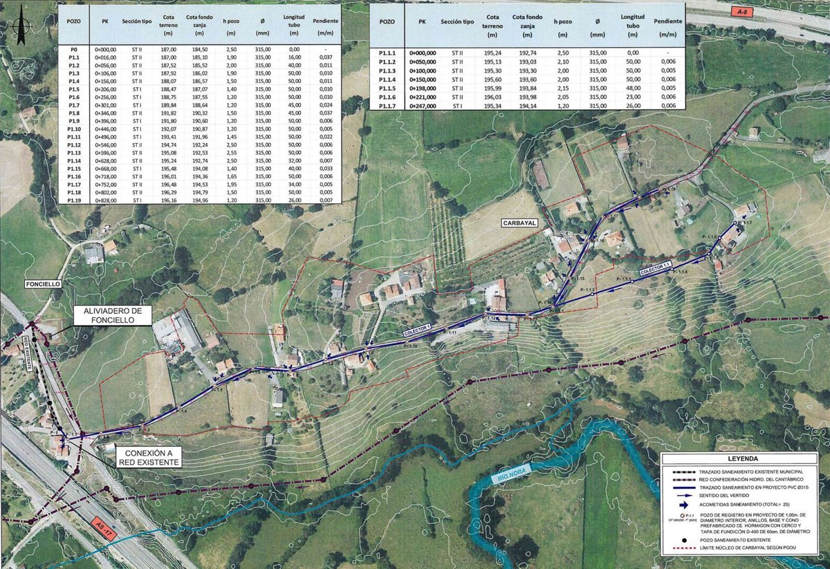 El proyecto contempla el desarrollo de una infraestructura, de la que carecía la localidad, que recoja las aguas residuales de este a oeste de la zona de Carbajal y su conducción por gravedad hasta el ramal de saneamiento municipal existente en las inmediaciones del aliviadero de Fonciello, donde se incorporarán al interceptor general del Nora. La nueva red, que contará con 828 metros de colector, dará servicio a 23 viviendas y alrededor de 70 vecinos.
