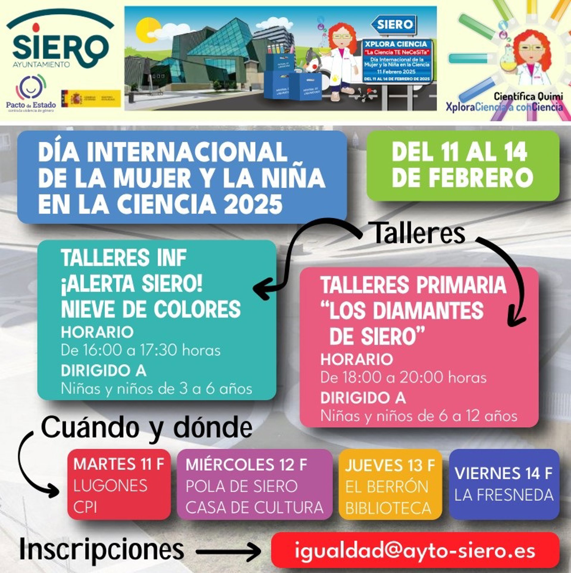 La concejala de Educación, Juventud e Igualdad de Siero, Eva Iglesias, ha presentado este domingo las actividades que el Ayuntamiento ha organizado con motivo del Día Internacional de la Mujer y la Niña en la Ciencia 2025. Las actividades tendrán lugar del 11 al 14 de febrero y para participar es necesario inscribirse de forma previa.