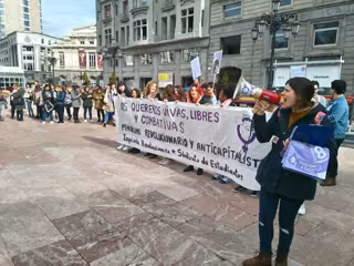 La portavoz del sindicato de estudiantes y libres y combativas, Marina Mata, ha celebrado este jueves que el feminismo avance en Asturias "con un claro componente de anticapitalismo", diciendo que "basta ya" y que quieren "acabar con el sistema que perpetra" la violencia de género y las desigualdades entre hombres y mujeres.