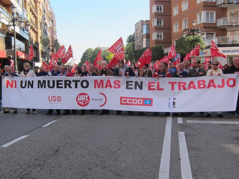 Los sindicatos CC.OO, UGT Y USO, se han manifestado este miércoles para reivindicar que los empresarios y la fiscalía de prevención de riesgos laborales aumenten los controles para evitar que el número de fallecidos en accidente laboral siga aumentando.