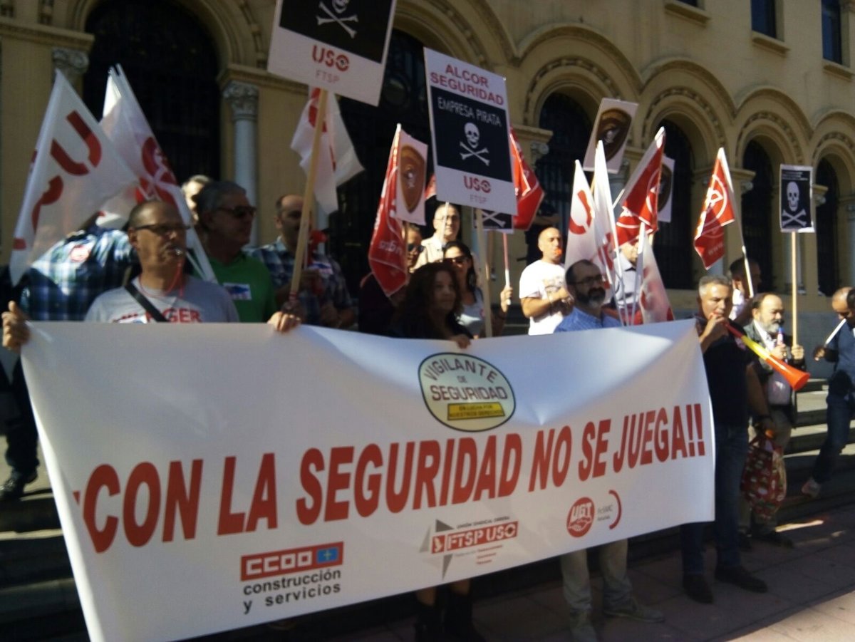 La Federación de Servicios, Movilidad y Consumo de UGT, la Federación de Construcción y Servicios de CCOO y el Federación de Trabajadores de Seguridad Privada de USO han vuelto a movilizarse en Asturias, en esta ocasión frente a la sede de Presidencia del Principado de Asturias.