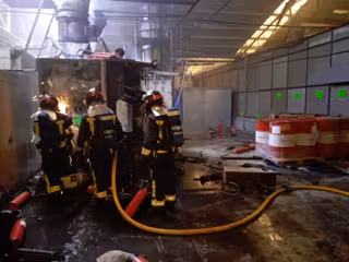 El siniestro se ha desencadenado en la cabina de pintura durante los trabajos de desguace que se están llevando a cabo en el edificio, como consecuencia de una chispa producida por la maquinaria que se está empleando al contacto con los vapores de pintura del recinto.