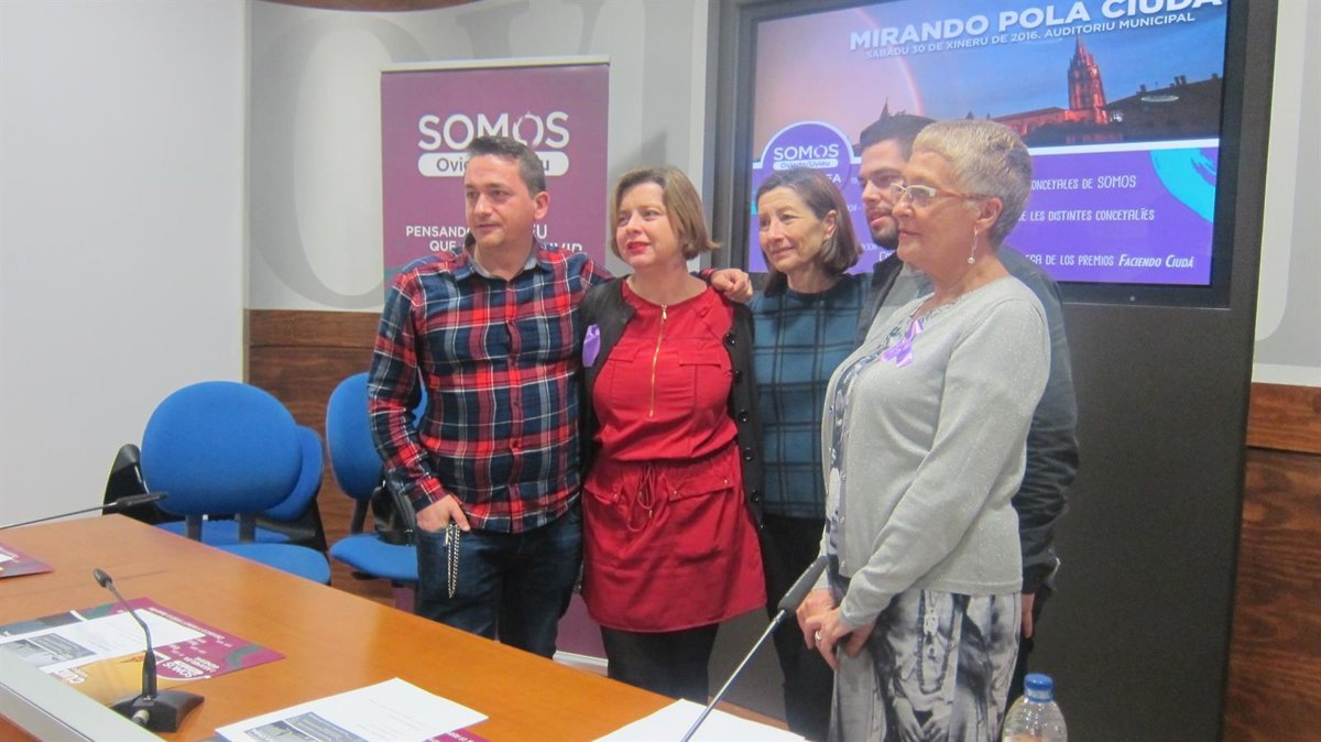 En la rueda de prensa han comparecido cinco de los seis ediles de Somos (Mercedes González, Fernando Villacampa e Inmaculada González, además de Rosón y Taboada) para presentar la asamblea ciudadana 'Mirando Pola Ciudá' que la formación celebrará este próximo sábado, a partir de las 11.00 horas en el aditorio.