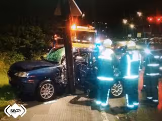 Una vez en el lugar, los efectivos procedieron a la excarcelación del conductor de un coche que había colisionado contra una farola. Los bomberos, tras abatir los asientos, extrajeron al herido, por la parte trasera del lado del copiloto, con la tabla de rescate. Previamente, se hizo hueco para que el herido pudiera ser atendido por el equipo sanitario. La conductora del segundo coche estaba fuera del vehículo.