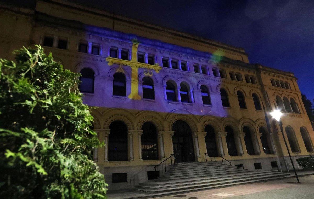 Archivo - Proyección de la bandera de Asturias en la sede de presidencia del Principado. - PRINCIPADO - Archivo