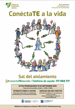 Con estos datos sobre la mesa, el Teléfono de la Esperanza ha lanzado la iniciativa 'ConectaTE a la vida', con motivo del Día Mundial para la Prevención del Suicidio que se celebrará el próximo 10 de septiembre. La acción, que se llevará a cabo, tanto de forma presencial como en redes sociales bajo el hashtag '#conectaTEalavida', tiene el doble objetivo de ayudar a otras personas frente a la soledad y el aislamiento, y proponer una reflexión sobre qué puede mantenerlos conectados.