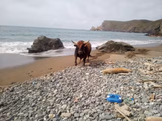 El toro en la playa de La Carnera tras caer por el acantilado. - J.R.V/EUROPA PRESS