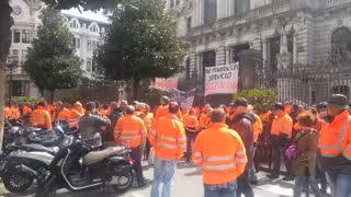 Trabajadores de la Consejería de Infraestructuras del Gobierno asturiano, personal laboral y funcionarios, han protagonizado este martes una concentración frente a la Junta General del Principado de Asturias en la que han exigido que se ponga fin a la "privatización" del servicio de conservación de carreteras.