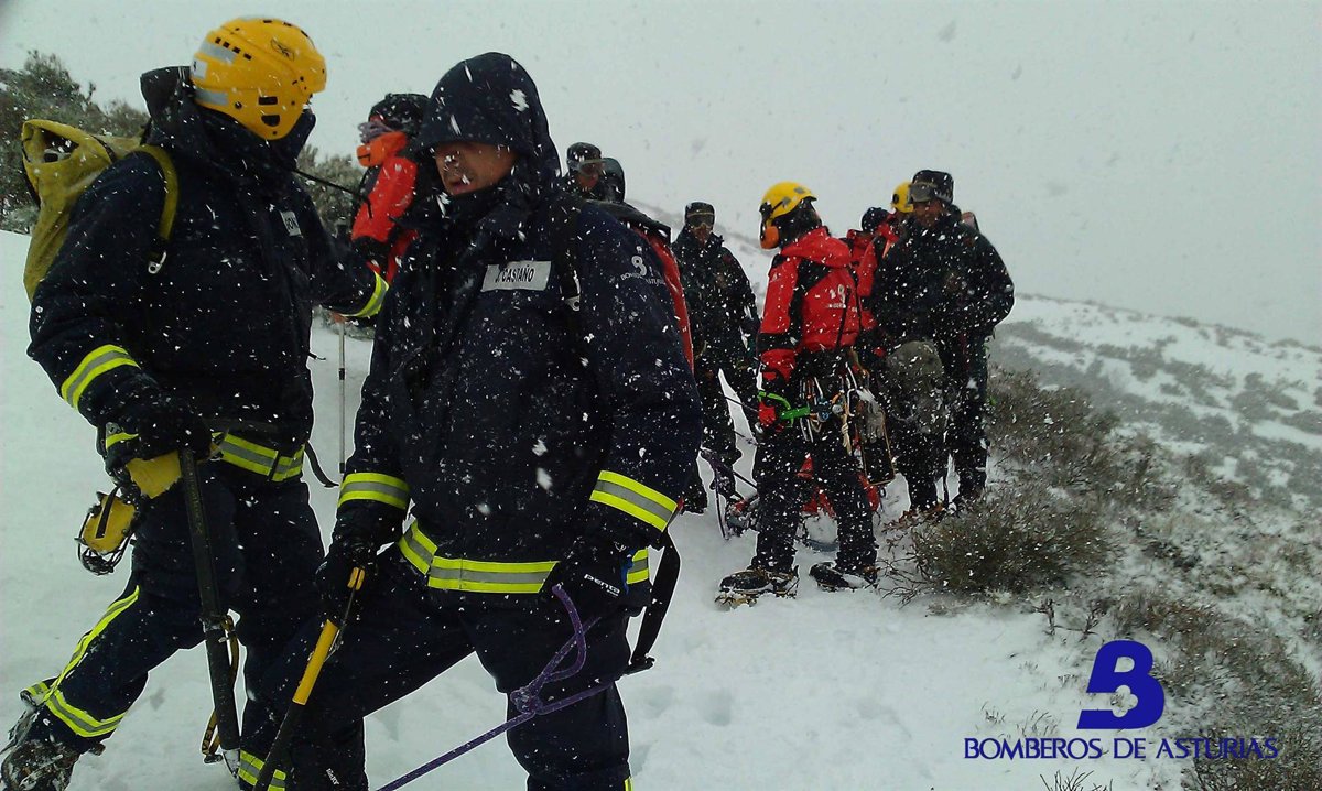 Los primeros en llegar hasta los dos miembros del Grupo de Rescate de Bomberos de Asturias fueron dos miembros del Grupo de Rescate e Intervención en Montaña (GREIM) de la Guardia Civil de Sabero. Poco después se unieron a estos efectivos el resto del equipo que participó en el rescate que fueron los Bomberos de Asturias de los parques de San Martín del Rey Aurelio y Proaza, además del resto de integrantes del propio Grupo de Rescate y tres miembros del GREIM de Cangas de Onís.