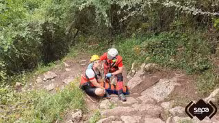 aeronave medicalizada. El afectado y su compañero se encontraban en una zona con vegetación muy frondosa, por el arbolado del lugar, lo que impidió al piloto aterrizar. Médico-rescatador y bombero-rescatador accedieron al herido mediante sendas operaciones de grúa.