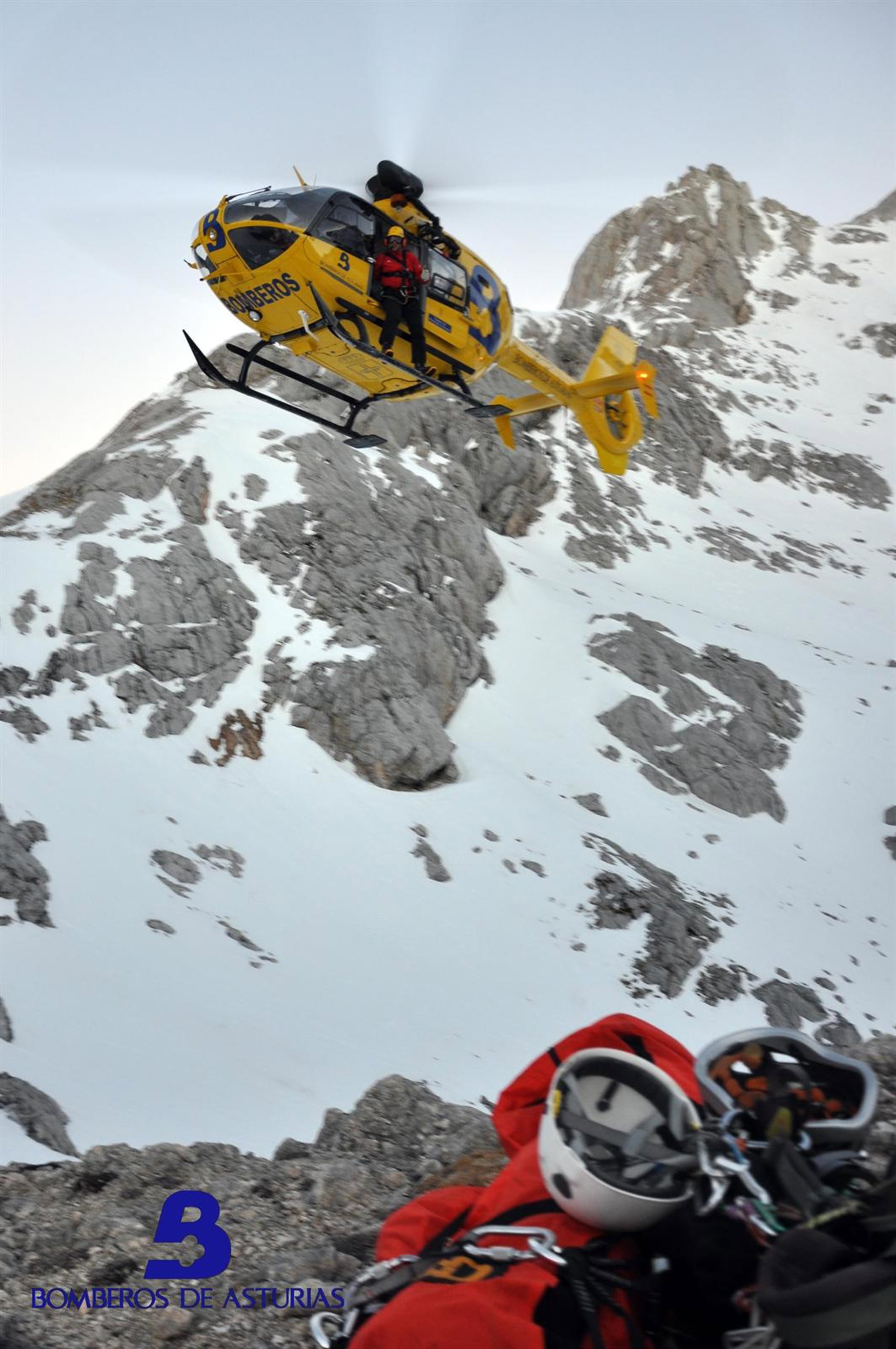 El Grupo de Rescate de Bomberos de Asturias a bordo del Helicóptero Medicalizado de Bomberos de Asturias ha trasladado al Hospital Universitario Central de Asturias (HUCA) a dos montañeros que resultaron heridos tras sufrir una caída en la vertiente asturiana de Peña Santa de Castilla, en Picos de Europa.