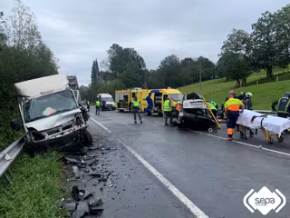El Centro de Coordinación de Emergencias recibió el aviso a las 10.59 horas. En la llamada se indicó que se había producido la colisión entre un coche y un camión y había una persona atrapada.