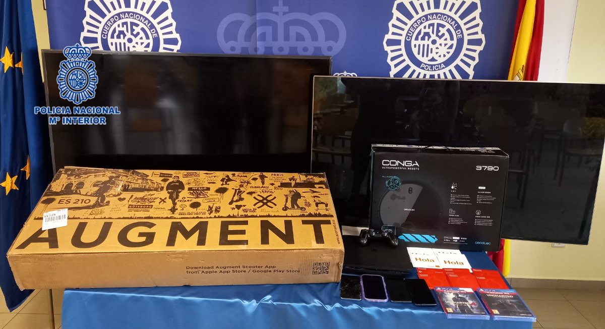 En el transcurso de la investigación fueron intervenidos diferentes efectos como dos televisores, un patinete eléctrico, un robot aspirador, una consola, varios teléfonos móviles y 13 tarjetas de contratos de líneas telefónicas de diferentes empresas.
