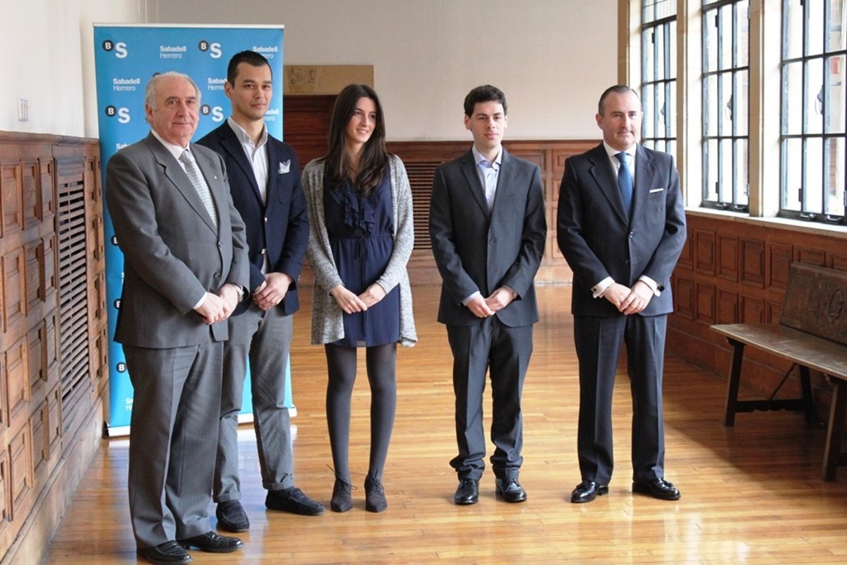 Los tres estudiantes de la Universidad de Oviedo seleccionados para disfrutar de una beca en prácticas en el Banco Interamericano de Desarrollo (BID) en Washington han participado este jueves en un encuentro con el rector de la Universidad de Oviedo, Vicente Gotor, y el director general de SabadellHerrero, Pablo Junceda.