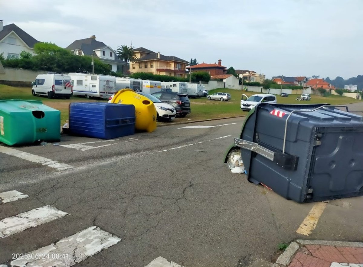 Contenedores volcados en Salinas - AYUNTAMIENTO DE CASTRILLÓN