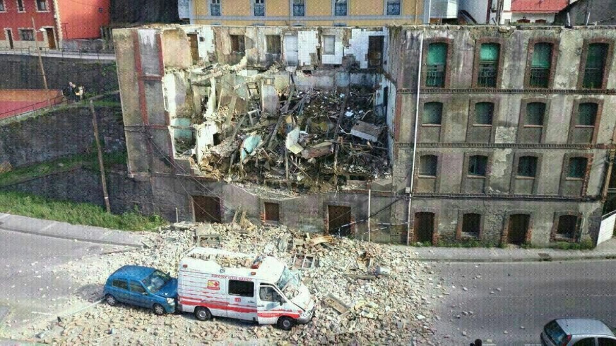 Tres personas han resultado heridas leves al derrumbarse, por causas que se desconoce, parte de un edificio deshabitado de cuatro plantas en Figaredo, Mieres, y caer sobre una ambulancia que circulaba por la zona, según ha informado el 112-Asturias.
