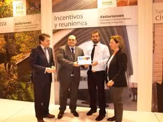 El director de Comunicación de trivago España, Alberto Calcerrada, ha entregado este jueves el premio 'trivago Online Reputation Award 2013' al alcalde del Ayuntamiento de Oviedo, Agustín Iglesias Caunedo; a la gerente de la Unión Hotelera del Principado de Asturias, Julia Peñalosa, y al presidente de la Hostelería de Asturias, José Almeida.