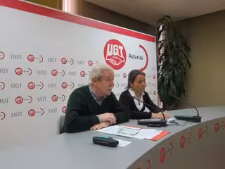 El secretario general de UGT Asturias, Justo Rodríguez Braga, y la secretaria de Acción Sindical de esta central, Mar Celemín, ven en la falta de una política industrial y la "marginación de Asturias en materia de Infraestructuras", algunas de las razones del aumento del desempleo registrado a lo largo del último años, según muestra la variación interanual de los datos de enero.