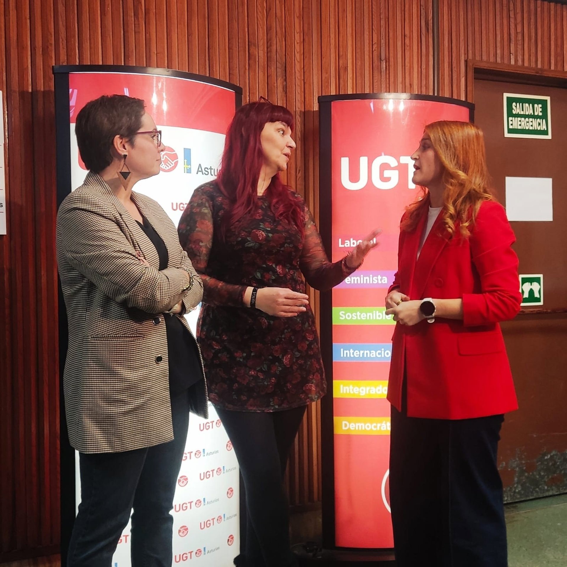 Vanesa Fernández García, directora General de Igualdad del Principado de Asturias; Evelyn Cosío Fernández, secretaria de Igualdad de UGT Asturias y Medea Gracia Hernández, responsable del Área Confederal de Mujeres de UGT. - EUROPA PRESS