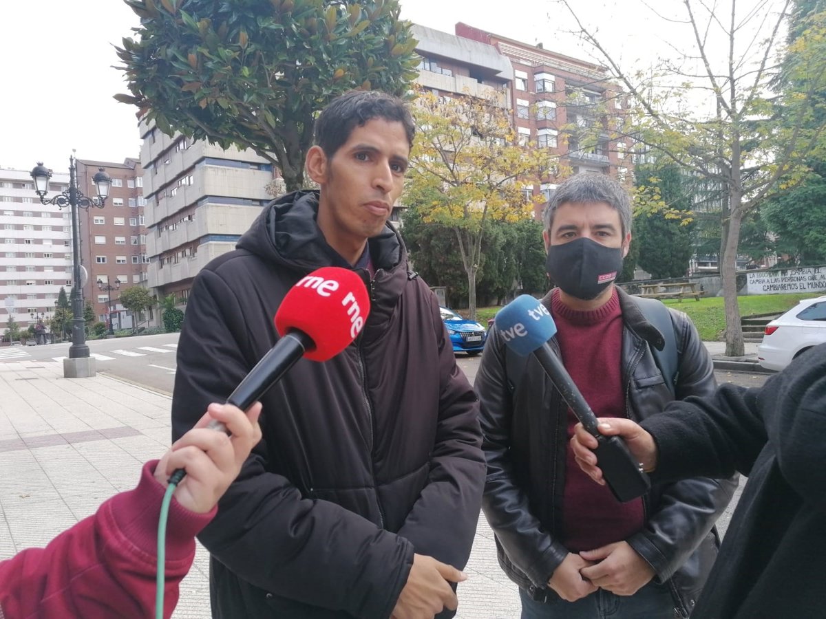 Mohamed Salem Hamma Abdalahe , representante de Relaciones Internacionales del Sindicato Unión de Trabajadores de Educación y Enseñanza Saharauis y Borja Llorente, Secretario General del Sindicato de Enseñanza CCOO Asturias. - EUROPA PRESS