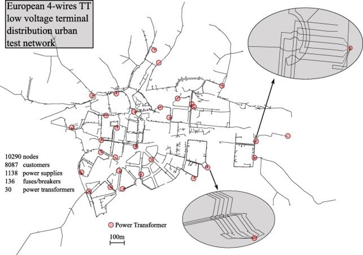 El modelo presentado por el grupo de investigación 'Lemur' proporciona datos de un sistema real. Representa una pequeña ciudad en la que hay 8.087 puntos de consumo eléctrico y 30 centros de transformación eléctrica. En los datos adjuntos al modelo se proporciona la información geográfica, los datos de consumo a lo largo de 20 días y todas las herramientas que permiten crear y resolver el modelo matemático de la red que consta de más de 10.000 nodos eléctricos.