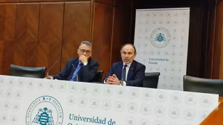 El rector de la universidad, Ignacio Villaverde, ha ofrecido una rueda de prensa junto al gerente de la institución, José Antonio Díaz Lago, para explicar las cuentas, que contemplan un mayor incremento de ingresos debido al aumento de las aportaciones del Principado de Asturias, con casi 9,4 millones de euros más que en 2023.