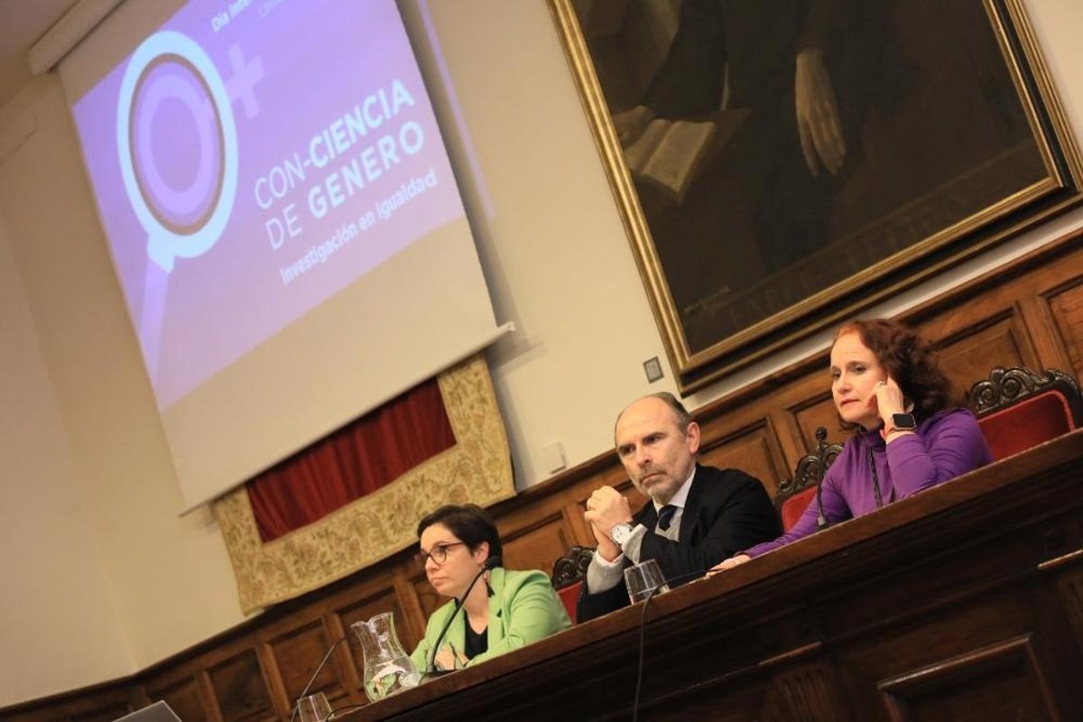 La Universidad de Oviedo ha conmemorado este lunes el Día Internacional de las Mujeres visibilizado una veintena de investigaciones con perspectiva de género en su acto institucional celebrado en el Aula Magna del Edificio Histórico bajo el título 'Con-Ciencia de Género'.