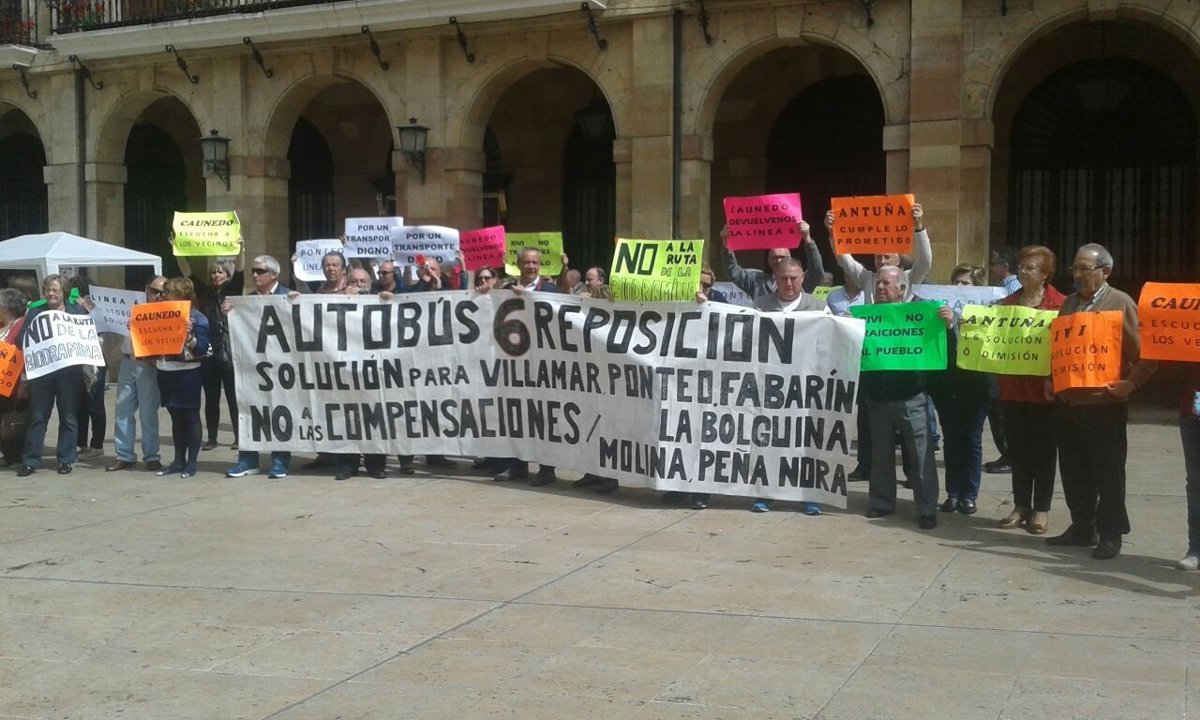Vecinos de Villamar y de pueblos de la zona Oeste de Oviedo (Ponteo, Molina, Malpica, Peña Nora, La Bolguina, Fabarín) se han vuelto a concentrar este mediodía ante el Ayuntamiento de Oviedo para reclamar a PP y a IU que se restituya la línea 6 de TUA.